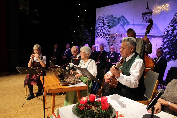 Schon beim Eintritt wurden die Mitglieder mit einem sinnvollen Gastgeschenk, das vom „Sprungbrettlädeli“ liebevoll bemalt wurde, überrascht. Als Ehrengäste konnte Obmann Josef Gantner den neuen Landesobmann Ltag Werner Huber, Ehrenobmann Dr. Gottfried Feurstein, LP Harald Sonderegger, BM Mandy Katzenmayer, Kaplan Inna, den Obmann des Sen.-beirates Hannes Moser, den Obmann der Sen.-börse Franz Lümbacher und den Obmann des Krankenpflegevereines Hans Maier, begrüßen. Er machte einen kurzen Jahresrückblick und stellte die Adventfeier unter das Motto „Echte Liebe schenken.“ Frau Inge Naier führte gekonnt durch den Nachmittag. Das Programm wurde vom „Franziskanerchor“ unter der Leitung von Mario Ploner mit ihren klangvollen Stimmen, der „Alfenz-Stubamusig“ unter der Leitung von Fr. Rosa Zottele mit wunderbaren instrumentalen Stücken, gestaltet. Erzählerin Silvia Comploy brachte zwischendurch ausgesuchte und heitere Weihnachtsgeschichten von Leonie Neier zum Besten. Der Obmann bedankte sich abschließend bei den Auftretenden auf der Bühne, bei den Mitgliedern für ihr Kommen und wünschte allen ein frohes Weihnachtsfest, sowie ein gesundes friedvolles neues Jahr. Anschließend lud der Seniorenclub zu einer kleinen Jause.