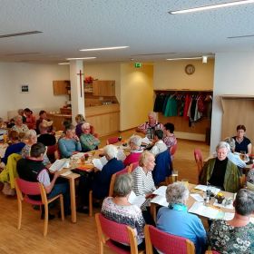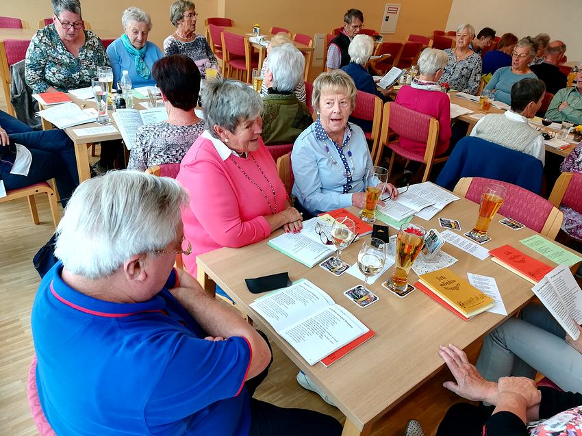Und damit die Kehlen nicht trocken bleiben, bewirtet Elisabeth die Gäste mit köstlichen Getränken. Zwischendurch werden auch kurze Mundart-Geschichten vorgelesen und öfters auch Witze erzählt.