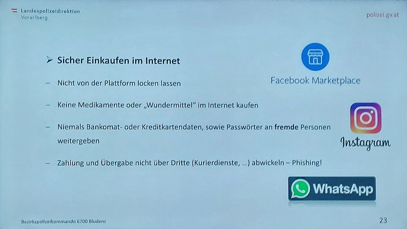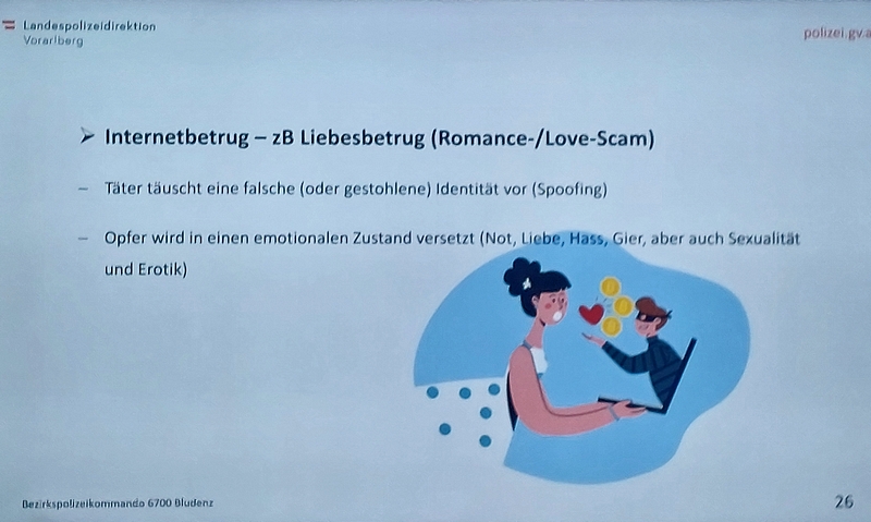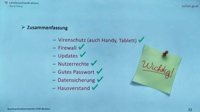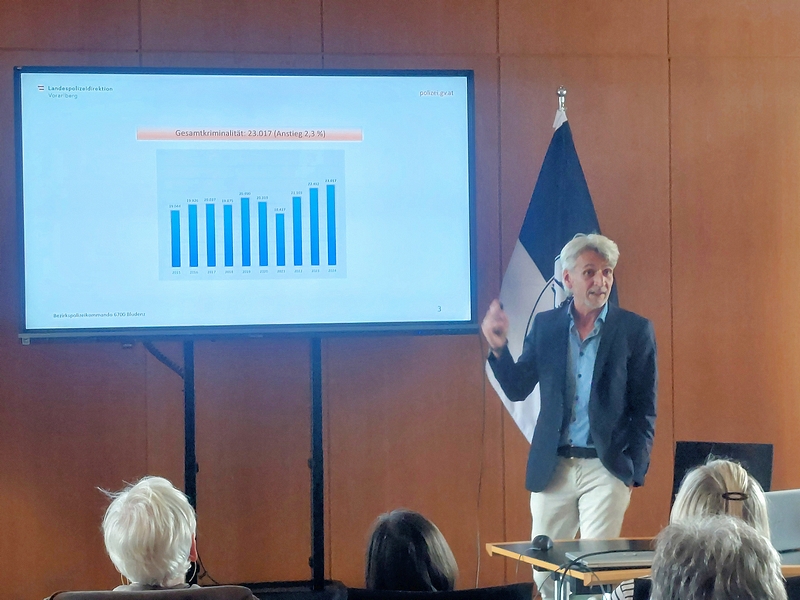 Im gut besetzten Sitzungszimmer des Rathaus Bludenz entführte uns Andreas Gantner in die Welt der Cyberkriminalität und die damit verbundenen Gefahren im Internet. In seinem interessanten Referat gab er den interessierten Zuhörern anhand einiger Beispiele Tipps, wie man sich vor eventuellen Gefahren schützen bzw. wo man sich Hilfe holen kann.